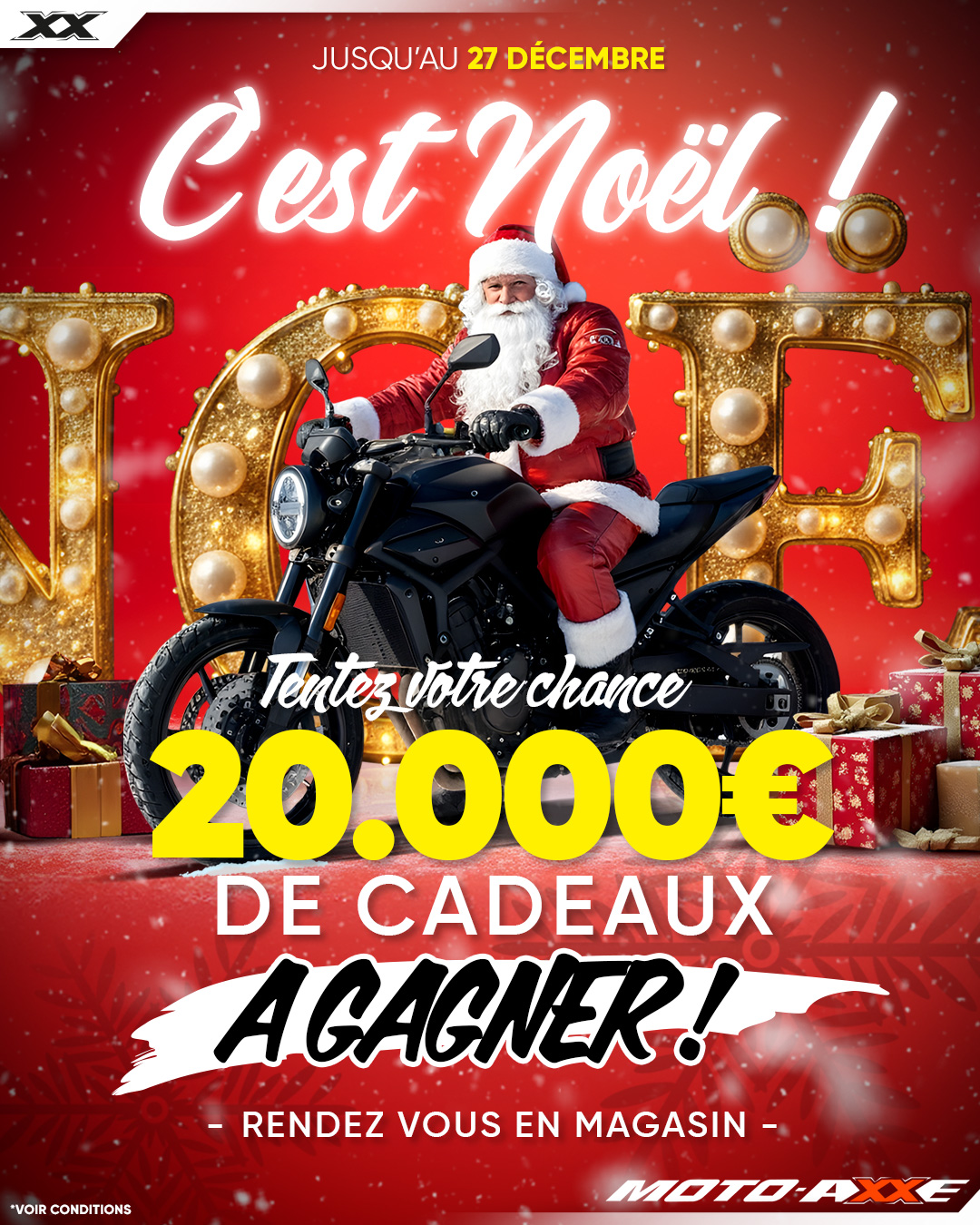 Cette année, le Père Noël a enfilé sa combinaison moto pour débarquer chez Moto Axxe avec des cadeaux XXL ! 🎁🏍️ Jusqu’au 29 décembre, faites le plein de bonnes affaires et profitez de nos remises exceptionnelles* :
