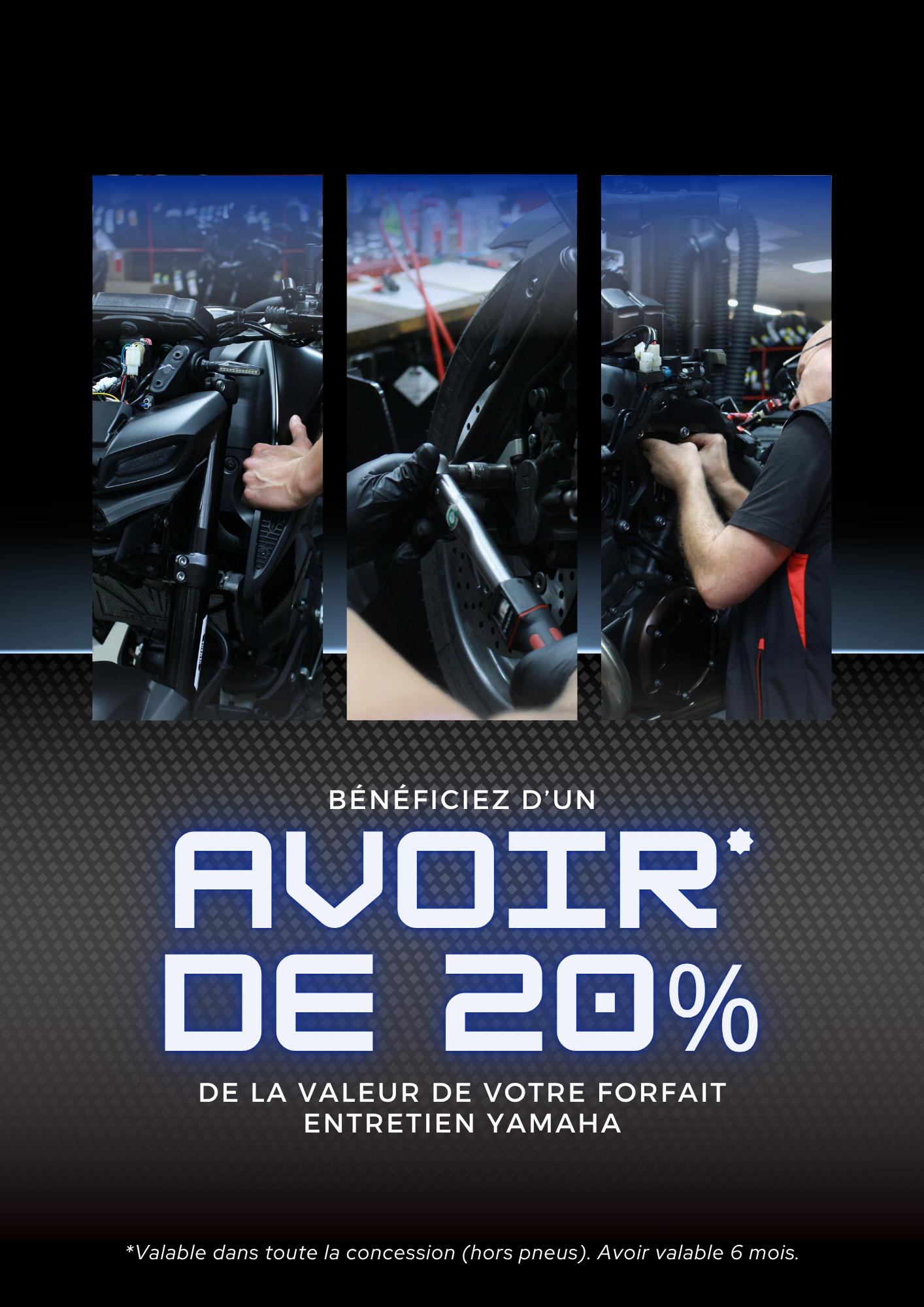 Bénéficiez d'un avoir de 20% de la valeur de votre forfait entretien Yamaha !